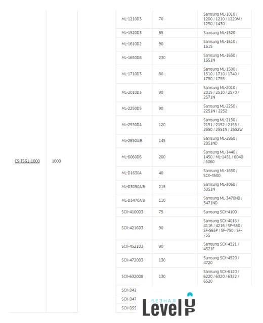 | Совместимость с принтерами | Samsung SCX-4200, Samsung SCX-4100, Samsung ML-1610, Samsung ML-2010 |