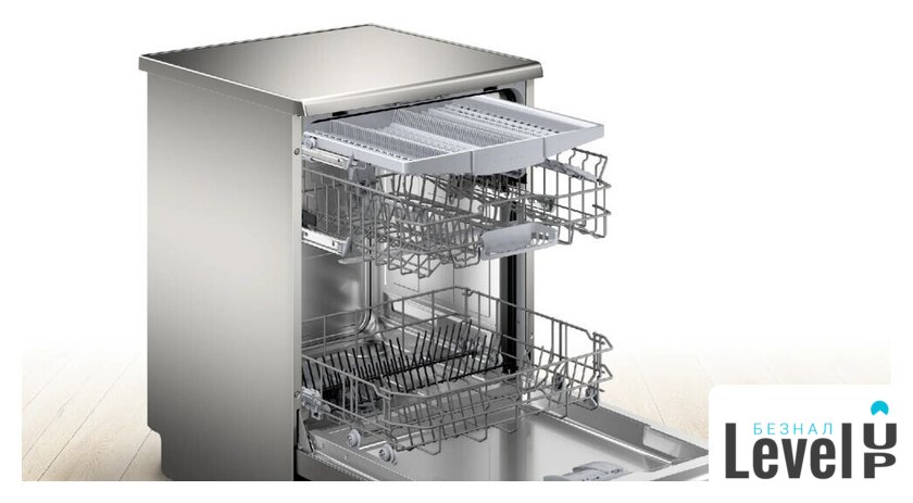 Особенности верхней корзины | регулировка положения по высоте, резиновые держатели для бокалов, складывающиеся держатели |