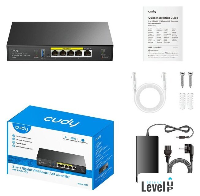 | Комплектация | - Блок питания- Ethernet-кабель- Руководство по установке |