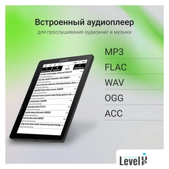 | Поддержка аудио форматов | MP3, AAC, FLAC, OGG, WAV |
