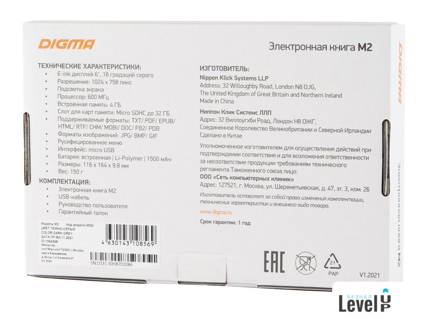 | Технология экрана | E-Ink |