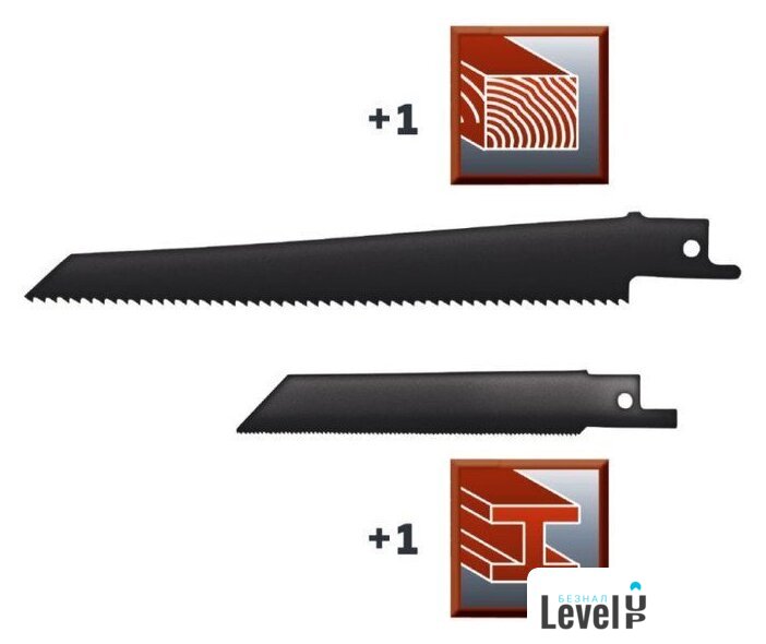 | Комплектация | - Пильное полотно по металлу- Пильное полотно по дереву |