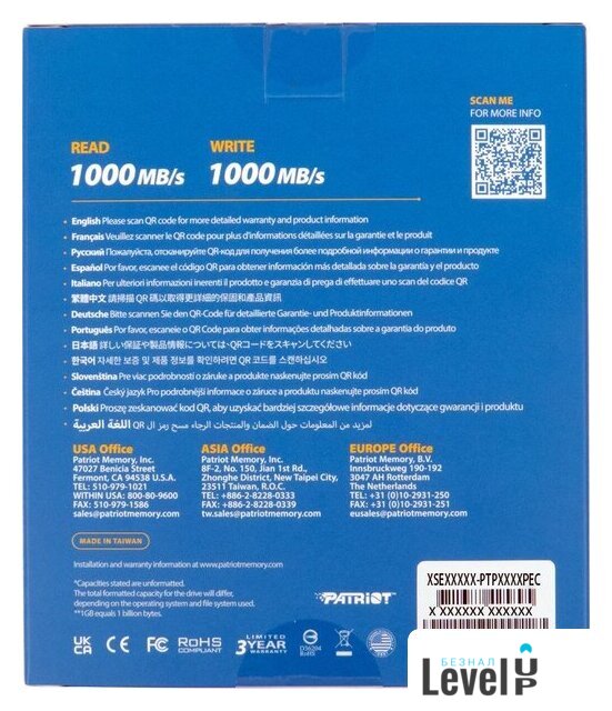 | Скорость последовательного чтения | 1 000 МБайт/с |