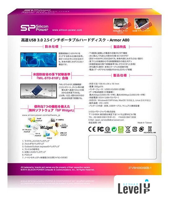 | Пыле-, влаго-, ударопрочность | IEC 529 IPX7, MIL-STD-810F 516.5 procedure IV |