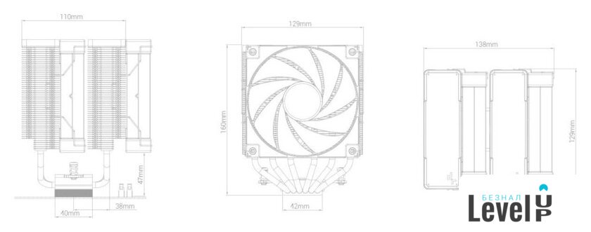 рассеивание до 260 Вт, макс. шум 28 дБ, вентилятор 120 мм, 1850 об/мин, PWM, белый