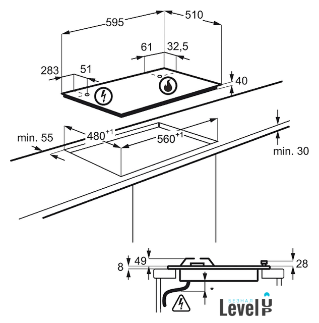 | Трёхуровневые конфорки | нет |