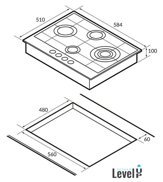 | Трёхуровневые конфорки | нет |