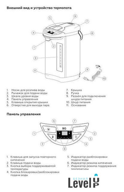 | Минимальный уровень воды | 0.5 л |