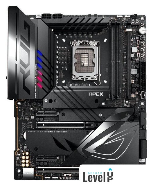| Описание внутренних разъемов | Fan and Cooling related 1 x 4-pin CPU Fan header1 x 4-pin CPU OPT Fan header1 x 4-pin AIO Pump header2 x 4-pin Chassis Fan headers2 x 4-pin Full Speed Fan headers1 x W_PUMP+ header1 x 2-pin Water In header1 x 2-pin Water Out header1 x 3-pin Water Flow header1 x Extra Flow Fan headerPower related 1 x 24-pin Main Power connector2 x 8-pin +12V Power connector1 x 8-pin PCIe Power connectorStorage related 3 x M.2 slots (Key M) 1 x DIMM.2 slot supports 2 x M.2 slots (Key M)4 x SATA 6Gb/s ports USB 1 x USB 20Gbps connector (supports USB Type-C®)2 x USB 5Gbps headers support additional 4 USB 5Gbps ports2 x USB 2.0 headers support additional 4 USB 2.0 portsMiscellaneous1 x 80 Light Bar jumper3 x Addressable Gen 2 headers1 x Alternative PCIe Mode Switch1 x Aura RGB header2 x BCLK button1 x BIOS Switch button 1 x FlexKey button 1 x Front Panel Audio header (F_AUDIO)1 x LN2 Mode jumper 1 x Osc sence header1 x Pause switch12 x ProbeIt Measurement Points1 x ReTry button2 x RSVD switches1 x RSVD header1 x Safe Boot button1 x Slow Mode switch 1 x Start button1 x 10-1 pin System Panel header1 x Thermal Sensor header1 x Thunderbolt (USB4) header1 x V_Latch switch |