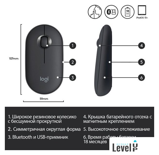 | Интерфейс подключения мыши | беспроводная радио/Bluetooth |