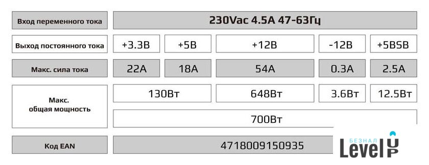 Технические характеристики блока питания |