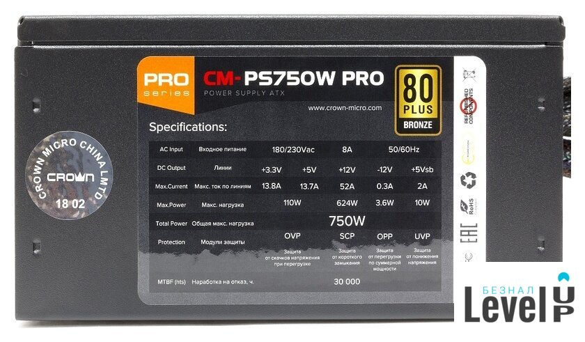 | Сертификат 80 PLUS | бронзовый |