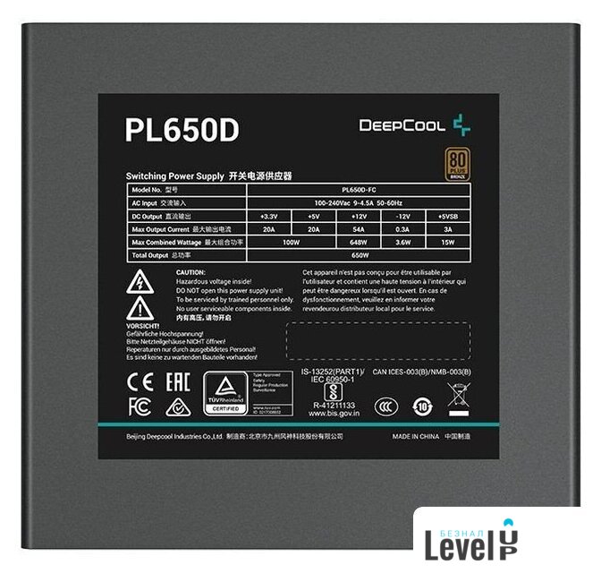 | Сертификат 80 PLUS | бронзовый |
