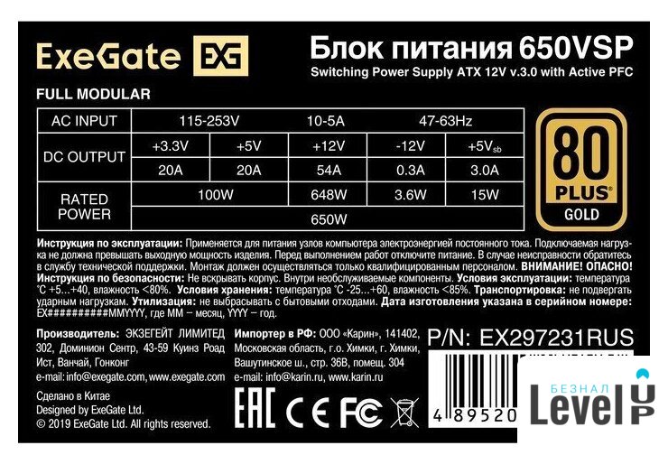 Импортеры: ООО "БВКомпьютерс" г. Минск, пер. Липковский, 12