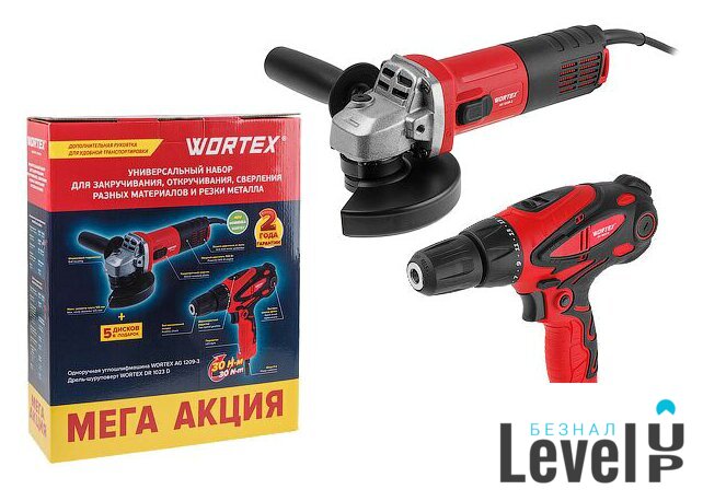Комплектация | Дрель-шуруповерт WORTEX DR 1023 D - 1 шт.;Одноручная углошлифмашина WORTEX AG 1209-3 - 1 шт.;Отрезной круг WORTEX 125x1,2x22,2 мм - 5 шт. |