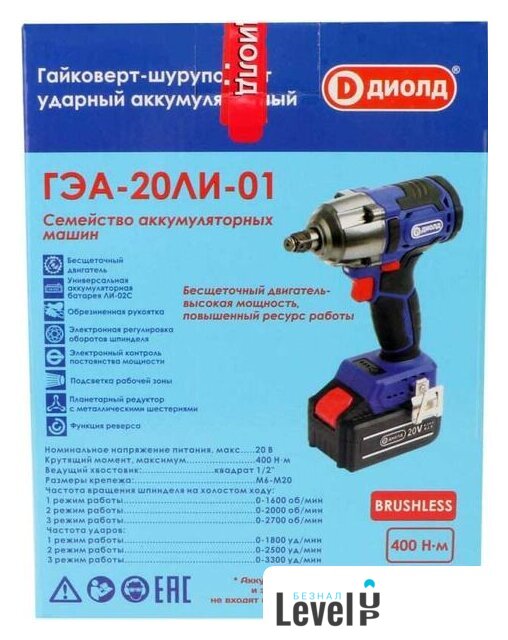| Комплектация | - Руководство по эксплуатации;- Адреса гарантийных мастерских;- Упаковка;- Поясная скоба;- Гайковерт. |