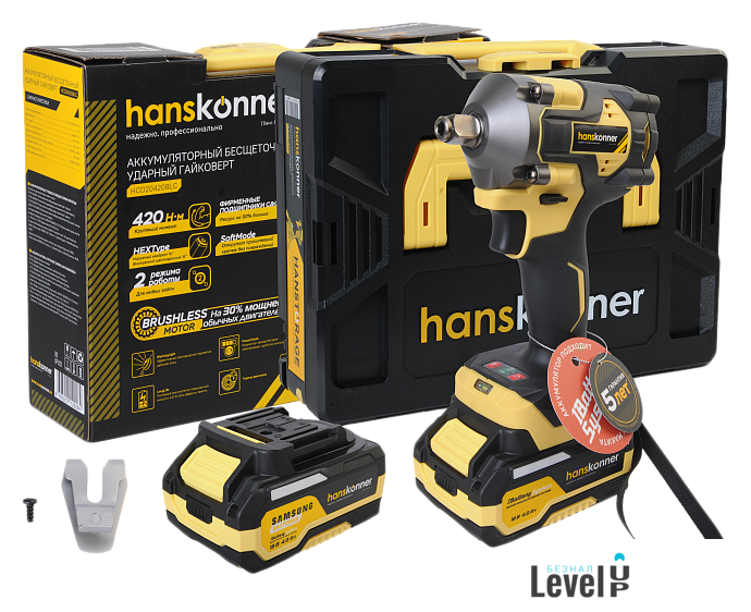 | Комплектация | - Аккумуляторный ударный гайковерт (1 шт)- Аккумуляторная батарея (1 шт)- Зарядное устройство (1 шт)- Скоба (1 шт)- Фиксирующий винт (1 шт)- USB LED-фонарик (1 шт)- Кейс |