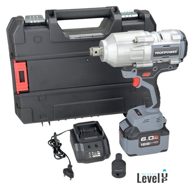 Комплектация | - Гайковерт - 1 шт- Адаптер переходник - 1 шт- Аккумулятор 6.0 Ач - 1 шт- Зарядное устройство - 1 шт- Кейс - 1 шт |