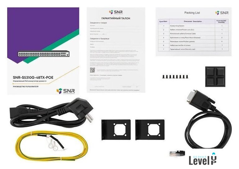 | Комплектация | Коммутатор;, Кабель питания;, Консольный кабель;, Кабель заземления;, Крепления в стойку (2 шт.);, Резиновые ножки (4 шт.);, Набор болтов;, Руководство по установке;, Гарантийный талон. |