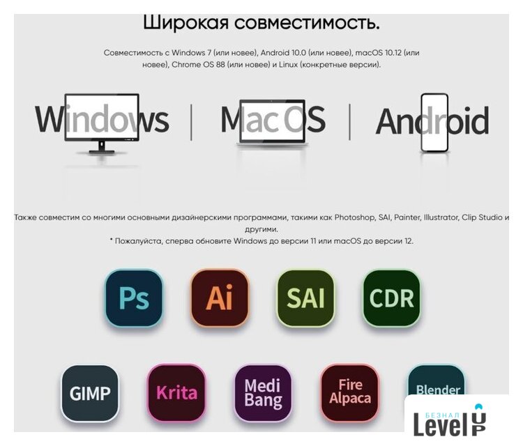 | Комплект поставки | - перо- подставка для пера- 8 сменных наконечников- перчатка- защитная пленка- кабель USB Type-C - USB Type-A- адаптер USB Type-A - USB Type-C- документация |