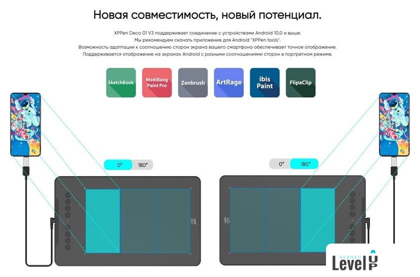 | Чувствительность к наклону пера | 60 ° |