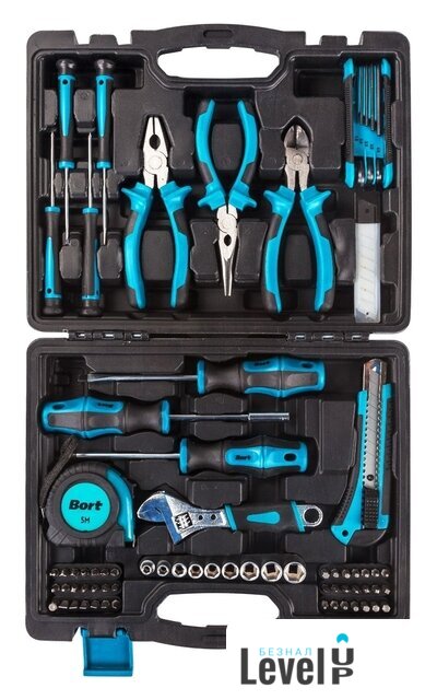 | Комплектация | Бита 25 мм 42шт (3, 4, 5, 5.5, 6, 7, AD, PH0, PH1, PH2, PH2, PH3, PZ0, PZ1, PZ2, PZ2, PZ3, S0, S1, S2, S3, T10, T15, T20, T25, T27, T30, T40, H2, H2.5, H3, H4, H5, H5.5, H6, SP4, SP6, C1, TW1, TW2, TW3, TW4)БокорезыГоловки 1/4" 9шт (5, 6, 7, 8, 9, 10, 11, 12, 13)ДлинногубцыКейс со сменными лезвиями 10штКлюч разводнойКлюч шестигранный 8шт (1,5; 2; 2,5; 3; 4; 5; 5,5; 6)НожОтвертка 100мм 2шт (PH2, SL6)Часовая отвертка 75 мм 4 шт (SL2, SL2.5, PH0, PH1)Отвертка-держатель для битПлоскогубцыРулетка 5м |