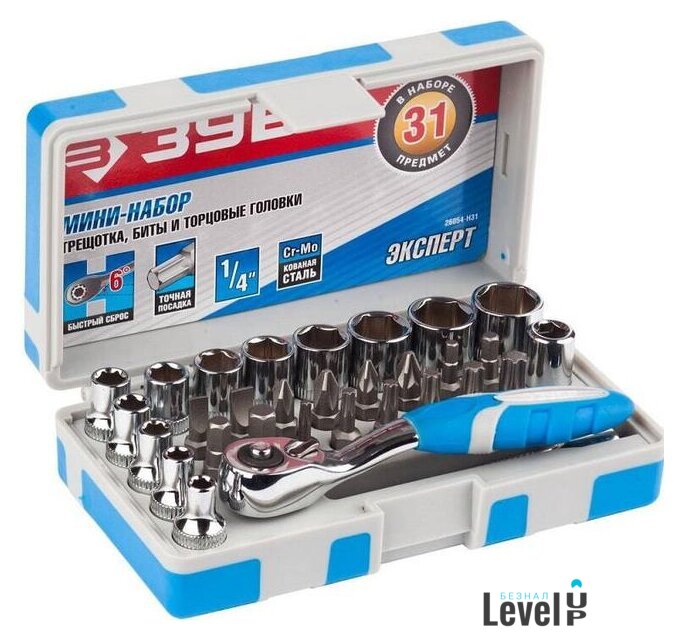 | Комплектация | Мини-трещотка 1/4"Удлинитель 1/4" 80 ммАдаптер для бит SQ1/4"хH1/4"Биты SL4.5, SL5.5, PH1, PH2, PZ1, PZ2, H3, H4, H5, H6, TX10, TX15, TX20, TX25, TX30, TX40Торцовые головки 4, 4.5, 5, 5.5, 6, 7, 8, 9, 10, 11, 12, 13 мм |