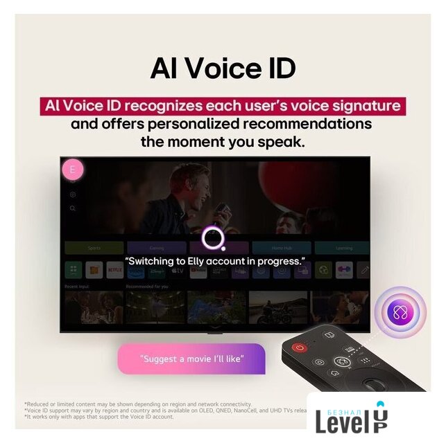 | Оригинальные функции | - AI Voice ID- AI Chatbot- AI Concierge- Multi View- Home Hub- LG Channels |