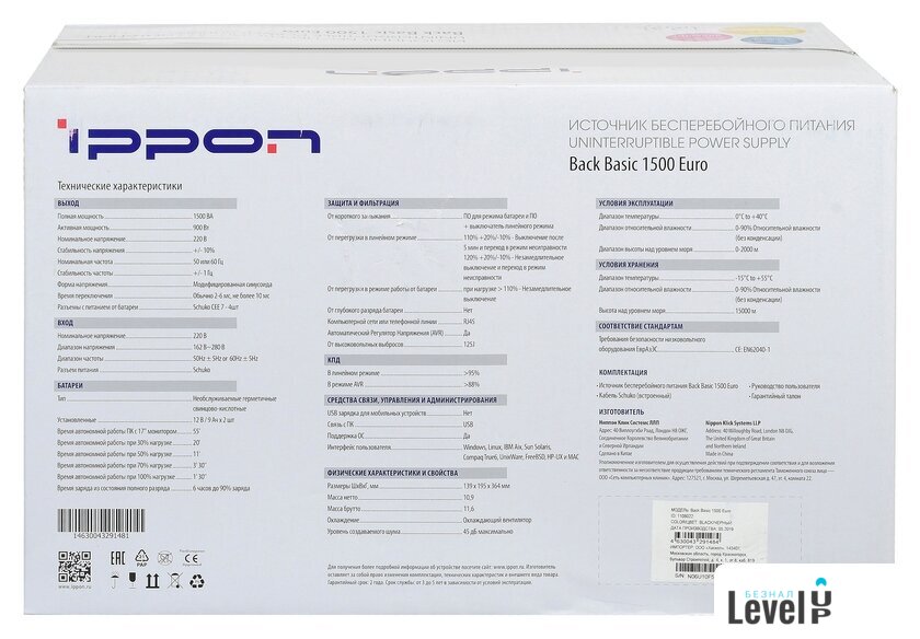Полная мощность | 1 500 VA |