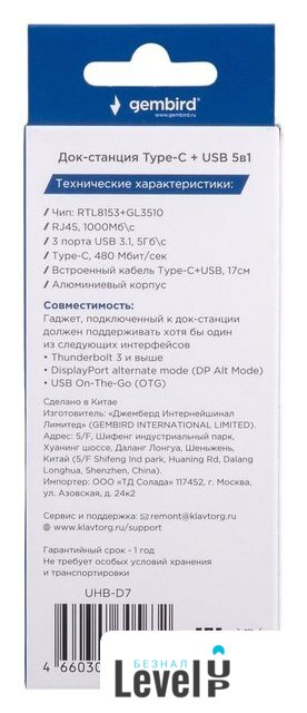| Все разъемы на адаптере | USB-A 3.2 Gen1 (5 Гбит/с), USB-C 2.0, RJ-45 |