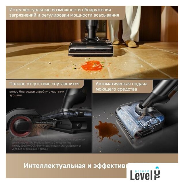 | Функциональные особенности | всасывание жидкостей, дисплей, автоматическая мойка швабры, автоматическая сушка швабры, дозатор для моющего средства |
