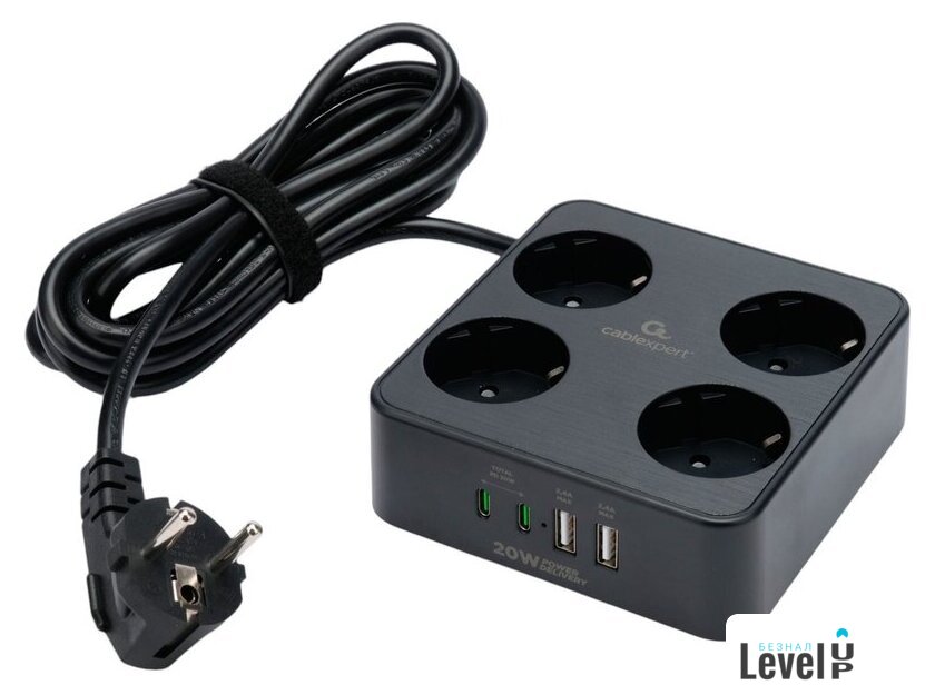 сетевой фильтр, кабель 2 м, 4 розетки Schuko (евро с заземлением) / 2500 Вт/USB