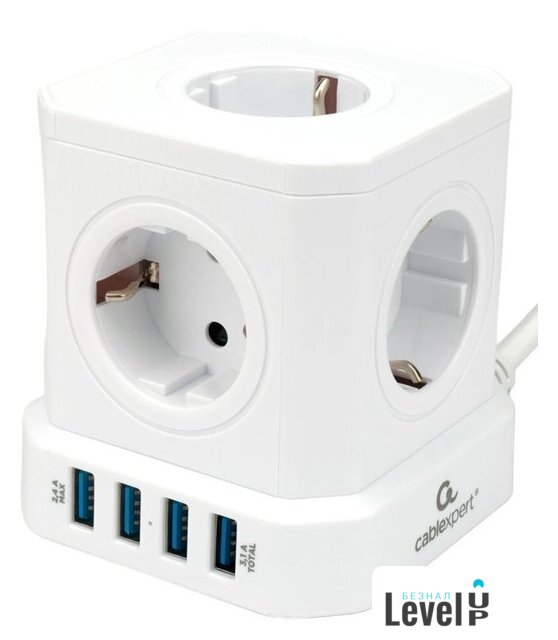 сетевой фильтр, кабель 3 м, 5 розеток Schuko (евро с заземлением) / 2500 Вт/USB