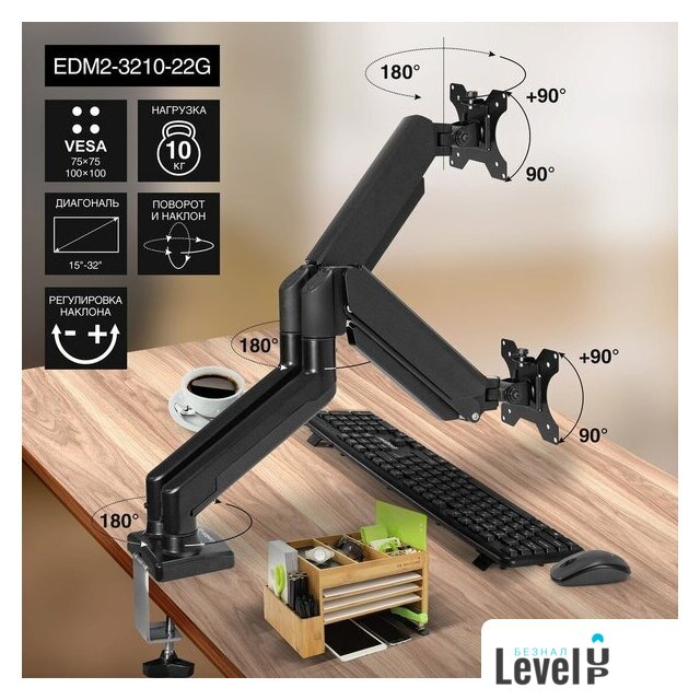 | Функциональные особенности | с регулировкой поворота, с регулировкой высоты, с кабель-каналом, струбцинное крепление |