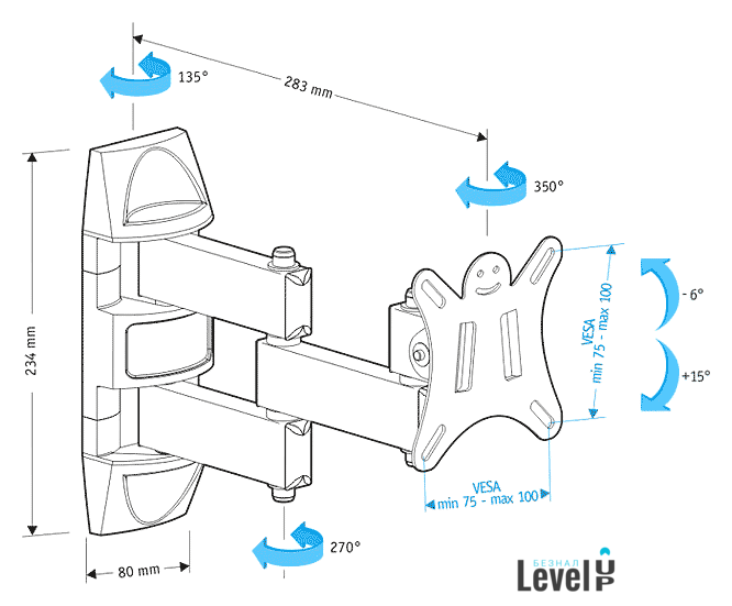 Расстояние от стены (потолка) | 117 — 283 мм |