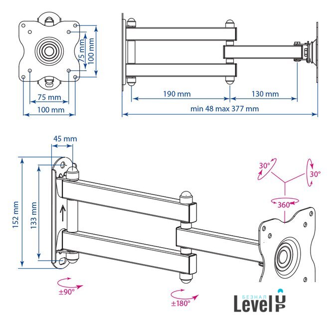 | Расстояние от стены (потолка) | 48 — 377 мм |