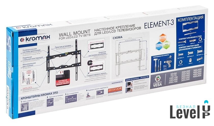 Совместимость с креплением VESA | 50x50, 75x75, 100x100, 200x100, 200x200, 200x300, 200x400, 300x200, 400x200, 300x300, 400x400 |