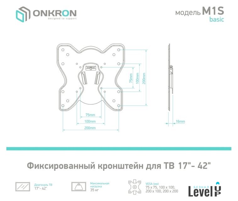 | Совместимость с креплением VESA | 75x75, 100x100, 200x100, 200x200 |
