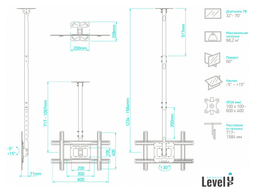 | Место крепления | настенный, потолочный (телескопический) |