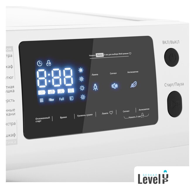 Все программы | Хлопок экстраХлопок в шкафХлопок под утюгДеликатная сушкаШерстьСинтетика экстраСинтетика в шкафОсвежение паромХолодный воздухТеплый воздухРубашкиСпортивная одеждаПостельное бельеСмешанные тканиДжинсыМой режим |