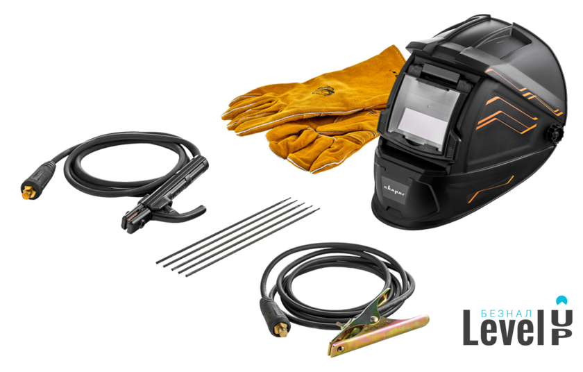 Комплект поставки - Инверторный сварочный аппарат;- Электрододержатель в сборе 200 А, 3 м;- Клемма заземления в сборе 300 А, 3 м;- Рутиловые электроды 2.5 мм - 5 шт.- Маска;- Краги;- Руководство по эксплуатации;- Паспорт.