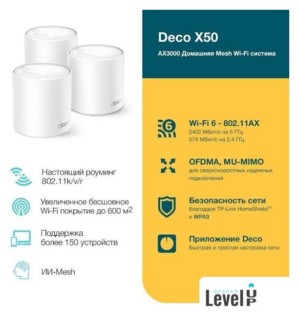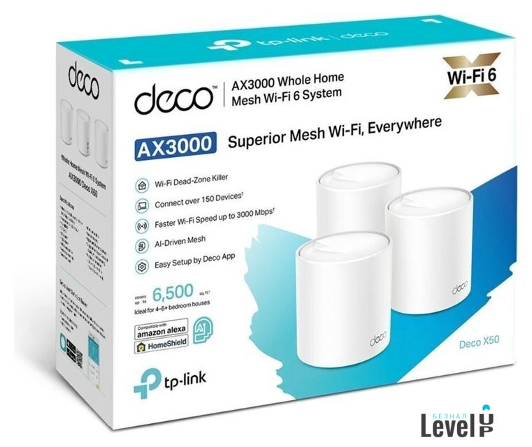 | Комплектация | Deco X50 (3 шт.)Кабель Ethernet RJ45Адаптер питания (3 шт.)Руководство по быстрой настройке |