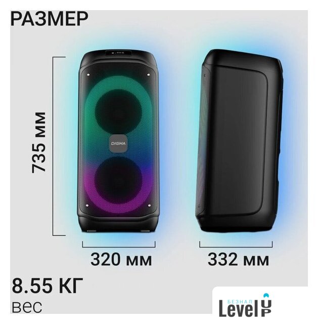 | Дополнительные возможности | радио, караоке, эквалайзер, режим усиления басов, подставка для смартфона |